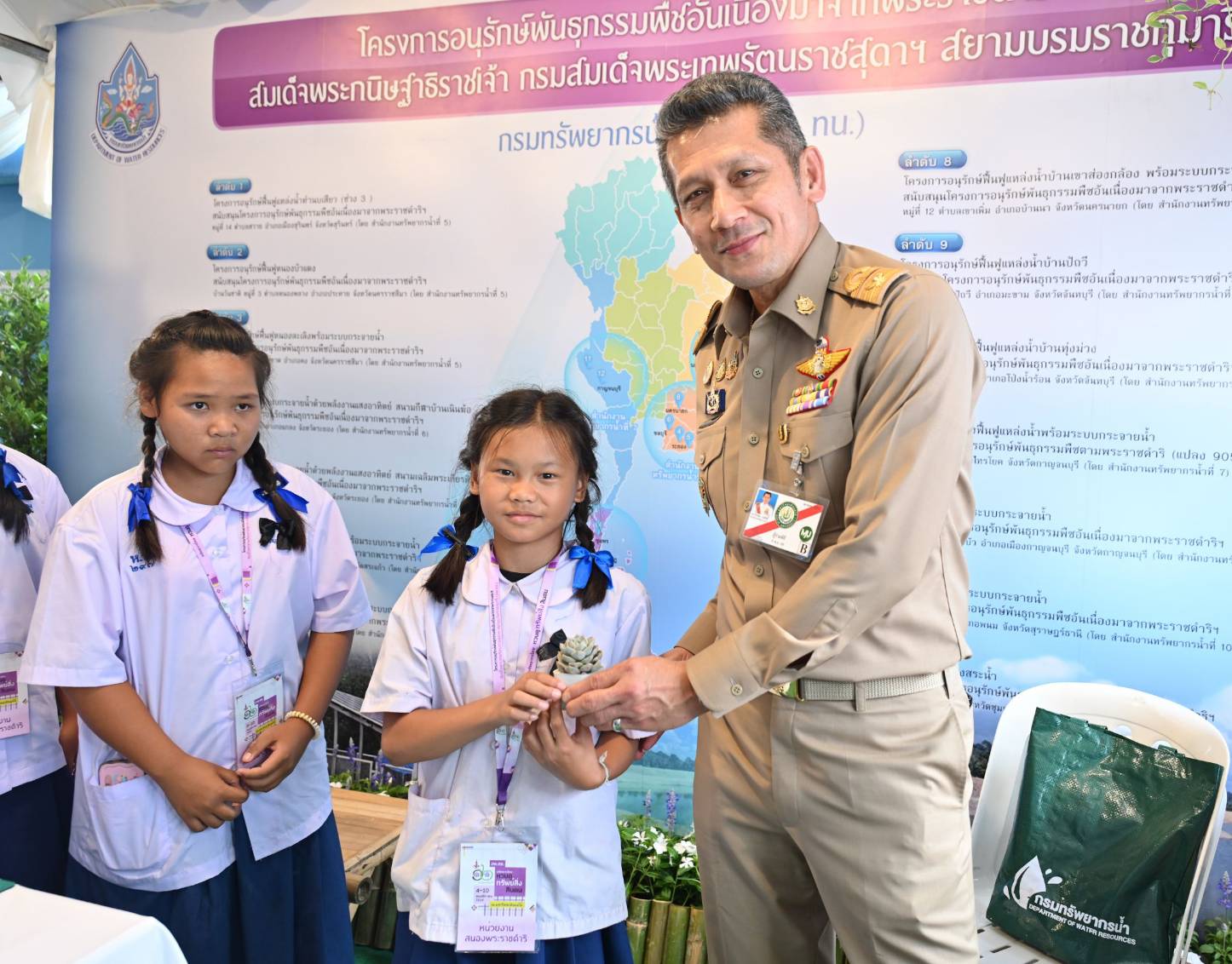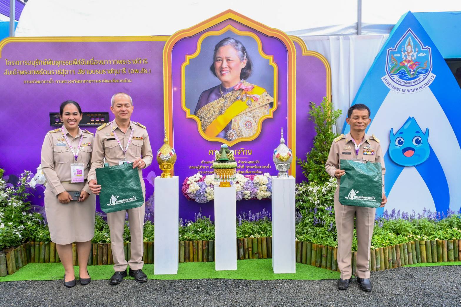 กรมทรัพยากรน้ำ กระทรวงทรัพยากรธรรมชาติและสิ่งแวดล้อม ร่วมจัดนิทรรศการในงานประชุมวิชาการและนิทรรศการ ครั้งที่ 12 ภายใต้โครงการอนุรักษ์พันธุกรรมพืชอันเนื่องมาจากพระราชดำริฯ ซึ่งเป็นโครงการในสมเด็จพระกนิษฐาธิราชเจ้า กรมสมเด็จพระเทพรัตนราชสุดาฯ สยามบรมราชกุมารี ประจำปี พ.ศ. 2568 จัดขึ้นภายใต้แนวคิด “ทรัพยากรไทย : หวนดูทรัพย์สิ่งสินตน” เพื่อเผยแพร่ผลงานด้านการบริหารจัดการน้ำอย่างบูรณาการ การอนุรักษ์ และฟื้นฟูแหล่งน้ำตามแนวทางเศรษฐกิจพอเพียง ตลอดจนส่งเสริมการเรียนรู้และสร้างความตระหนักรู้ถึงคุณค่าของทรัพยากรน้ำซึ่งมีความสำคัญต่อการดำรงชีวิตและความยั่งยืนของประเทศ