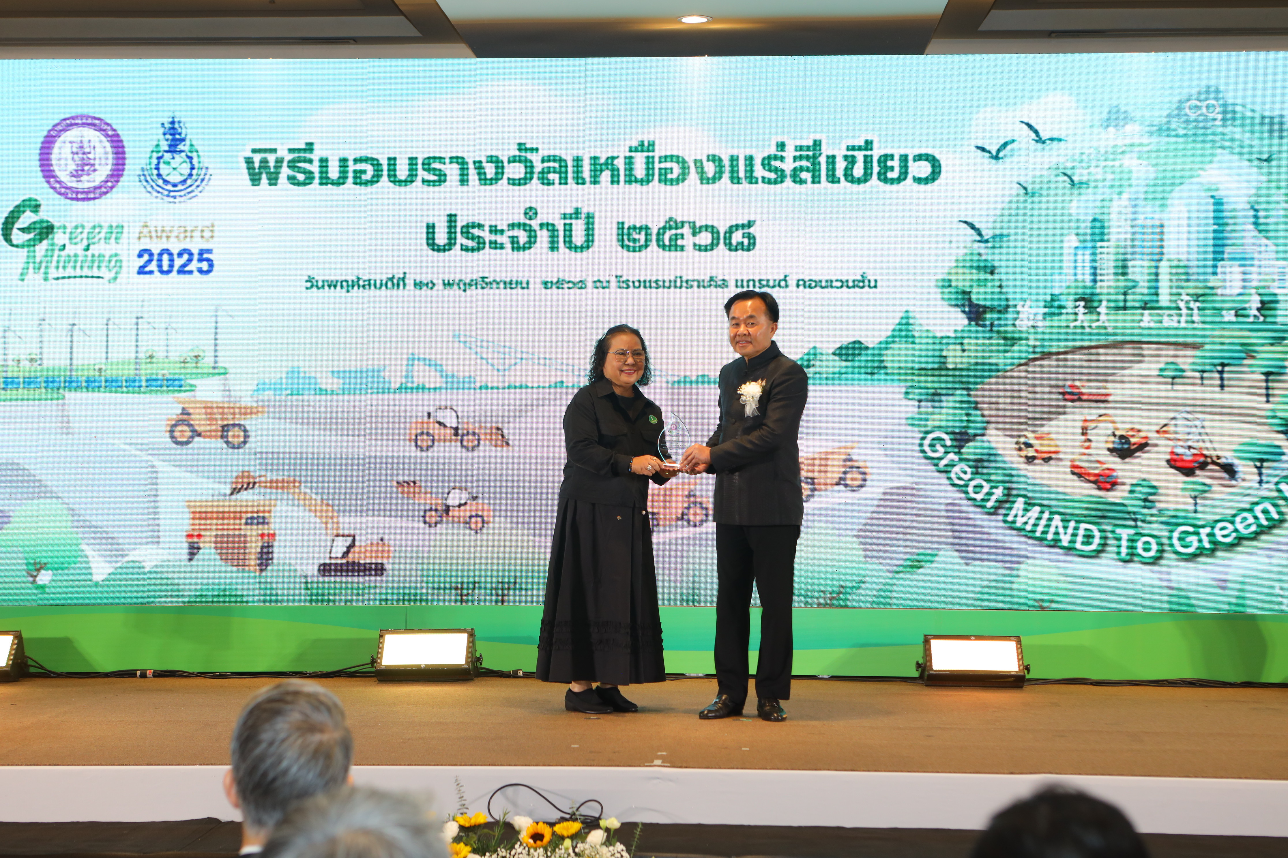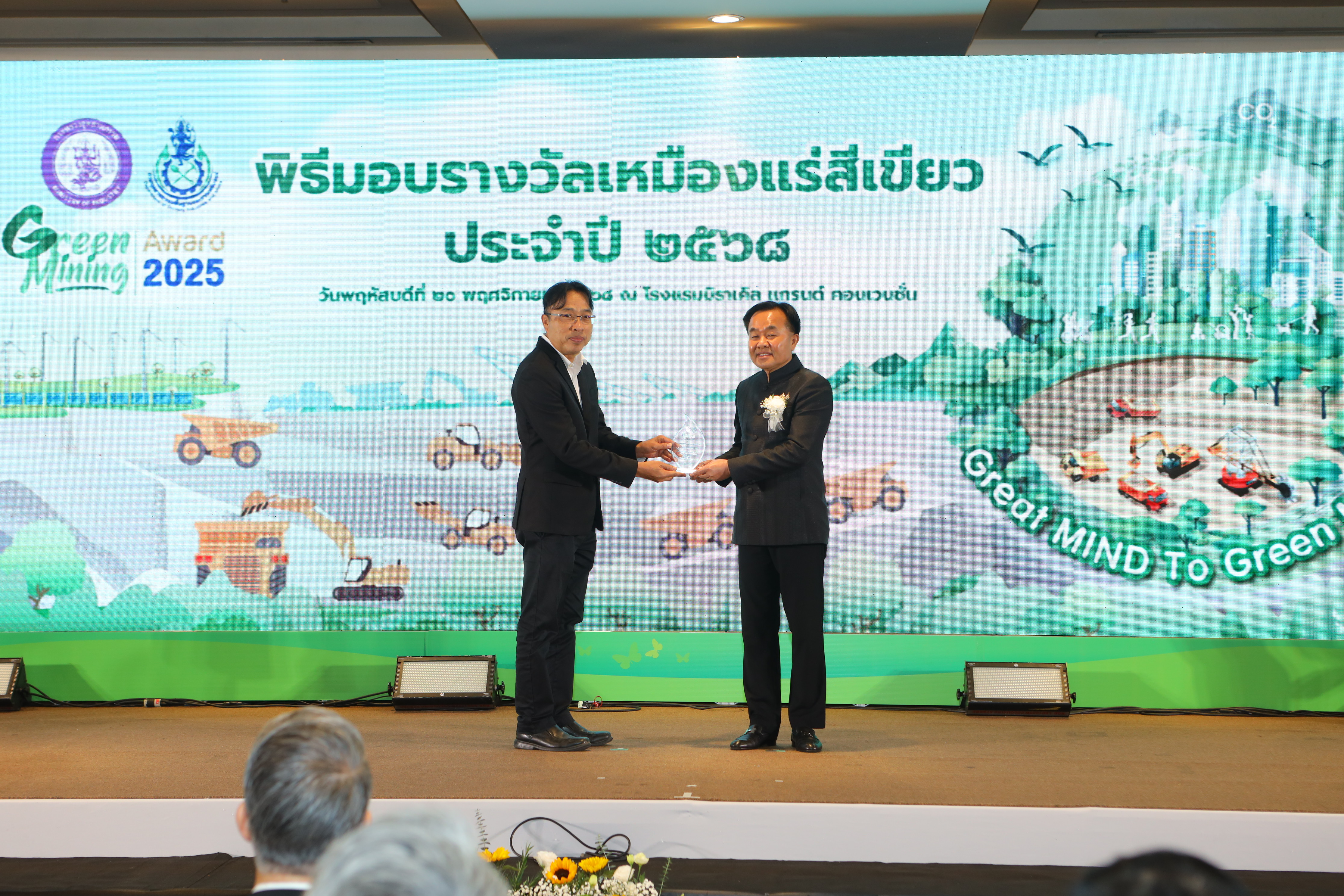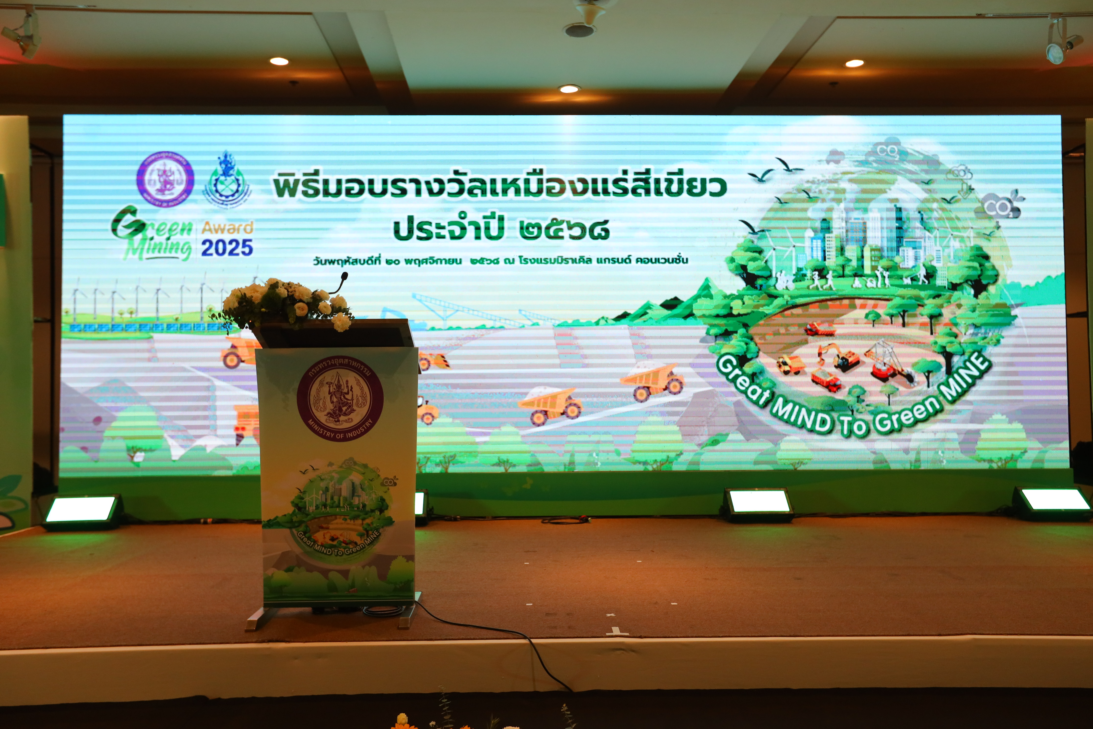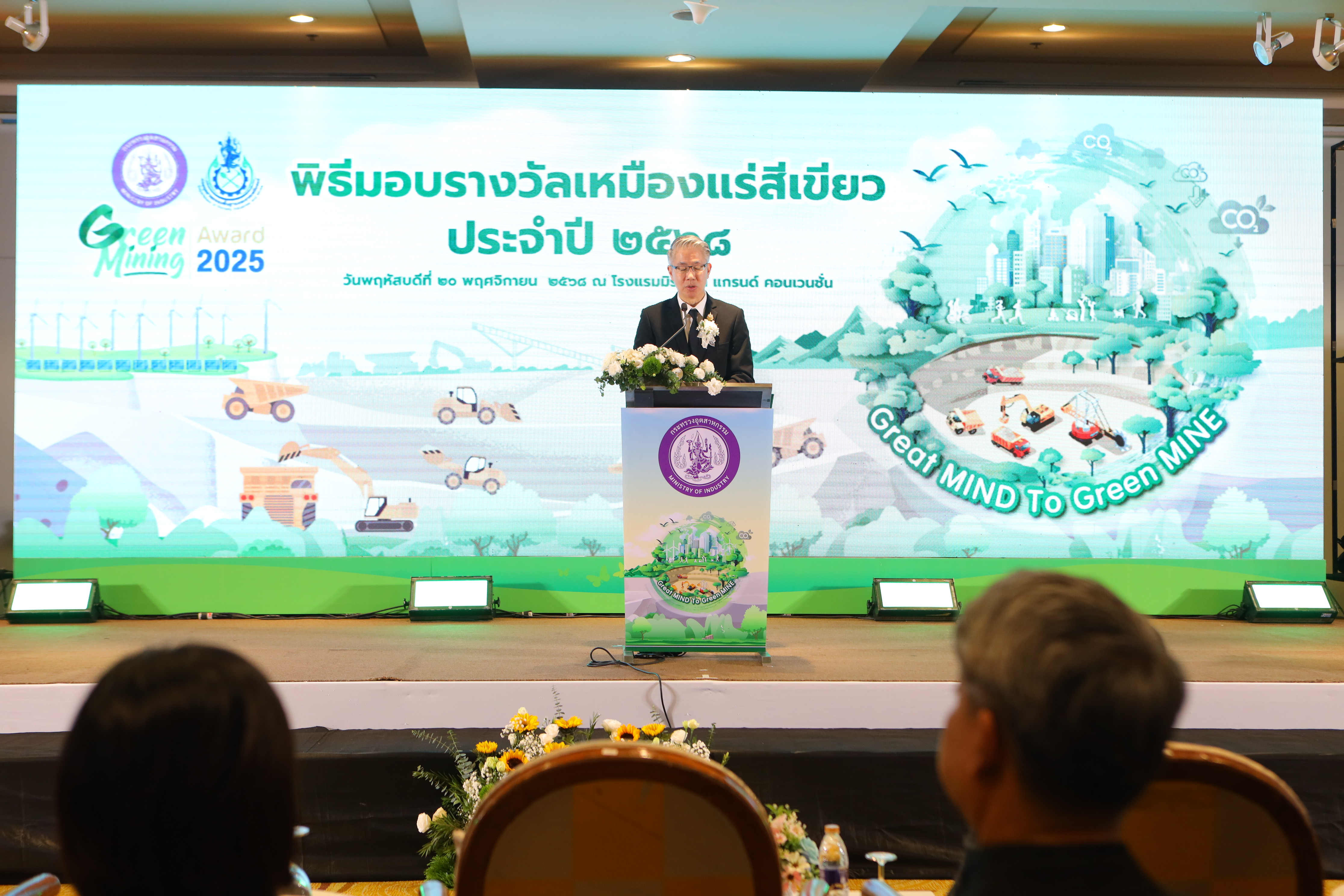 กรมอุตสาหกรรมพื้นฐานและการเหมืองแร่ (กพร.) จัดพิธีมอบรางวัลเหมืองแร่สีเขียว ประจำปี 2568 (Green Mining Award 2025) ต่อเนื่องเป็นปีที่ 16 เชิดชูสถานประกอบการที่ผ่านเกณฑ์การประเมินตามมาตรฐานเหมืองแร่สีเขียว ภายใต้แนวคิด “Great MIND To Green MINE” เสริมแกร่งอุตสาหกรรมเหมืองแร่ไทยให้เติบโตคู่กับชุมชนอย่างยั่งยืน