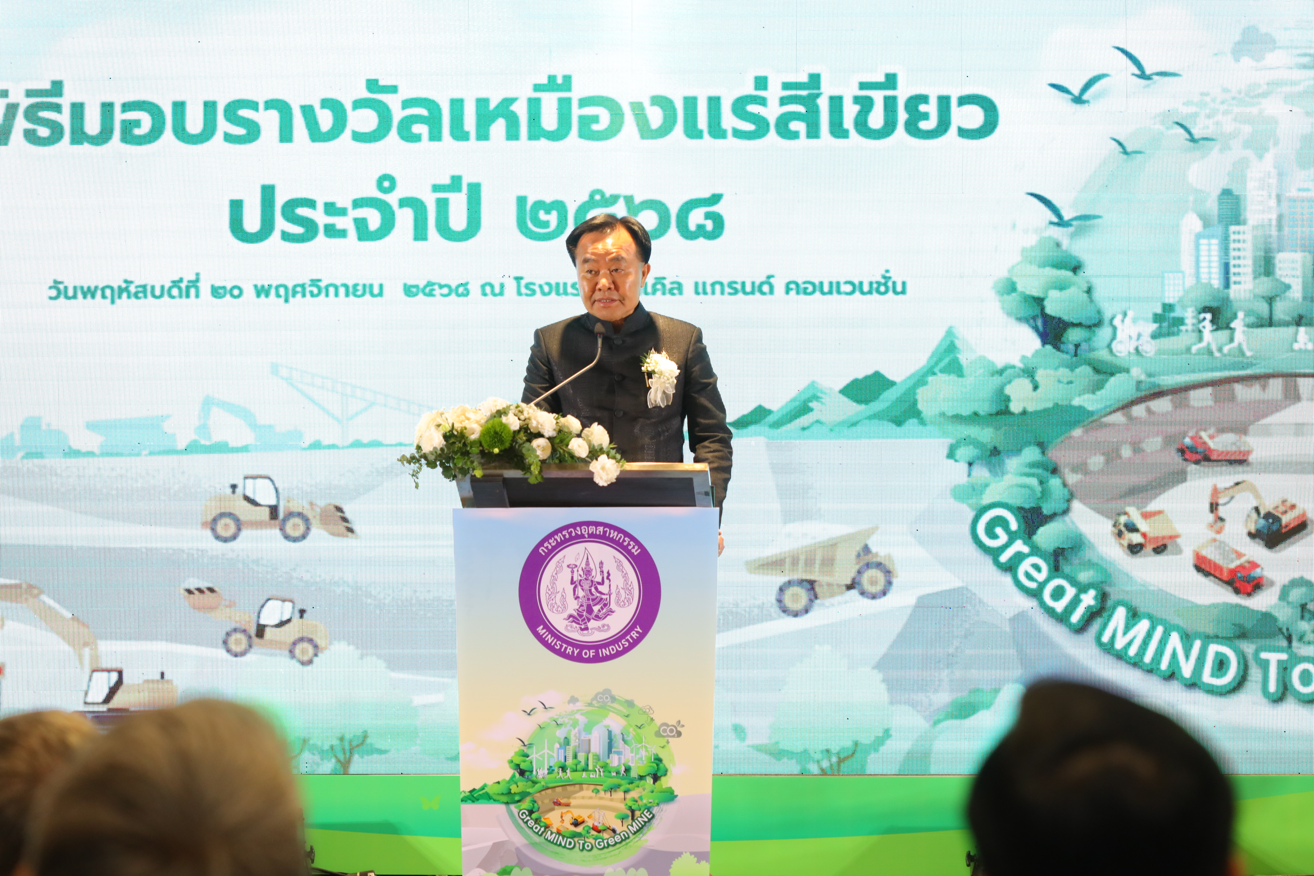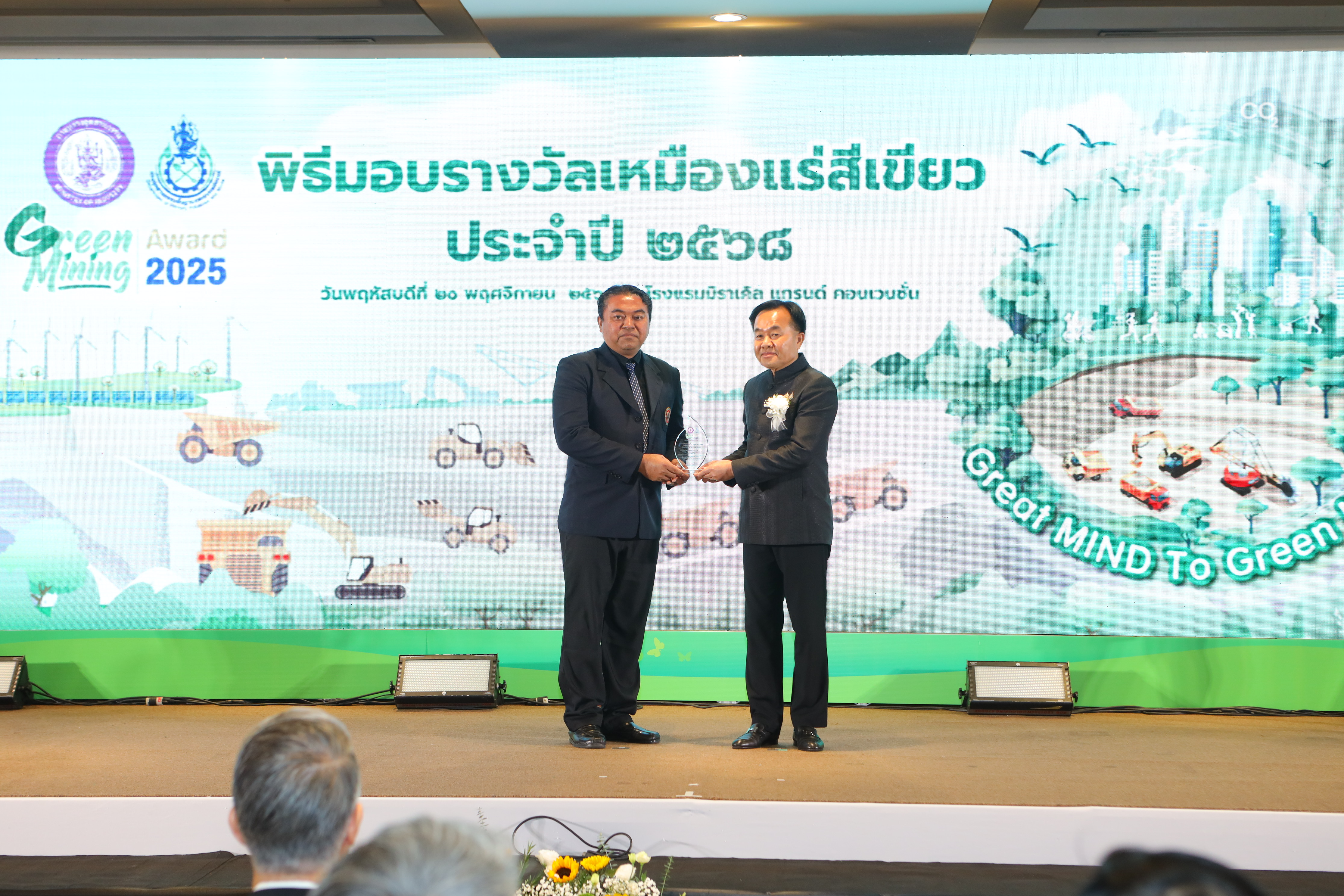 นายณัฐพล รังสิตพล ปลัดกระทรวงอุตสาหกรรม กล่าวเสริมว่า กระทรวงอุตสาหกรรมมุ่งส่งเสริมให้ภาคอุตสาหกรรมเติบโตอย่างสมดุล โดยไม่เพียงมุ่งสร้างผลประกอบการเท่านั้น แต่ยังให้ความสำคัญต่อคุณค่าทางสังคมและสิ่งแวดล้อม เพื่อให้อุตสาหกรรมไทยสามารถแข่งขันบนเวทีโลกได้อย่างมีศักยภาพและยั่งยืน โดยเฉพาะภาคอุตสาหกรรมเหมืองแร่ที่ถือเป็นอุตสาหกรรมต้นน้ำที่มีบทบาทสำคัญต่อเศรษฐกิจของประเทศ ซึ่งการดำเนินงานเหมืองแร่ในยุคใหม่ต้องเป็นไปอย่างรอบคอบ โปร่งใส คำนึงถึงชุมชนและสิ่งแวดล้อมเป็นสำคัญ รางวัลเหมืองแร่สีเขียวที่สถานประกอบการได้รับในวันนี้ จึงเป็นเครื่องยืนยันถึงความตั้งใจ และความรับผิดชอบต่อสังคมร่วมกันของภาคอุตสาหกรรมเหมืองแร่ รวมถึงชุมชนโดยรอบ
