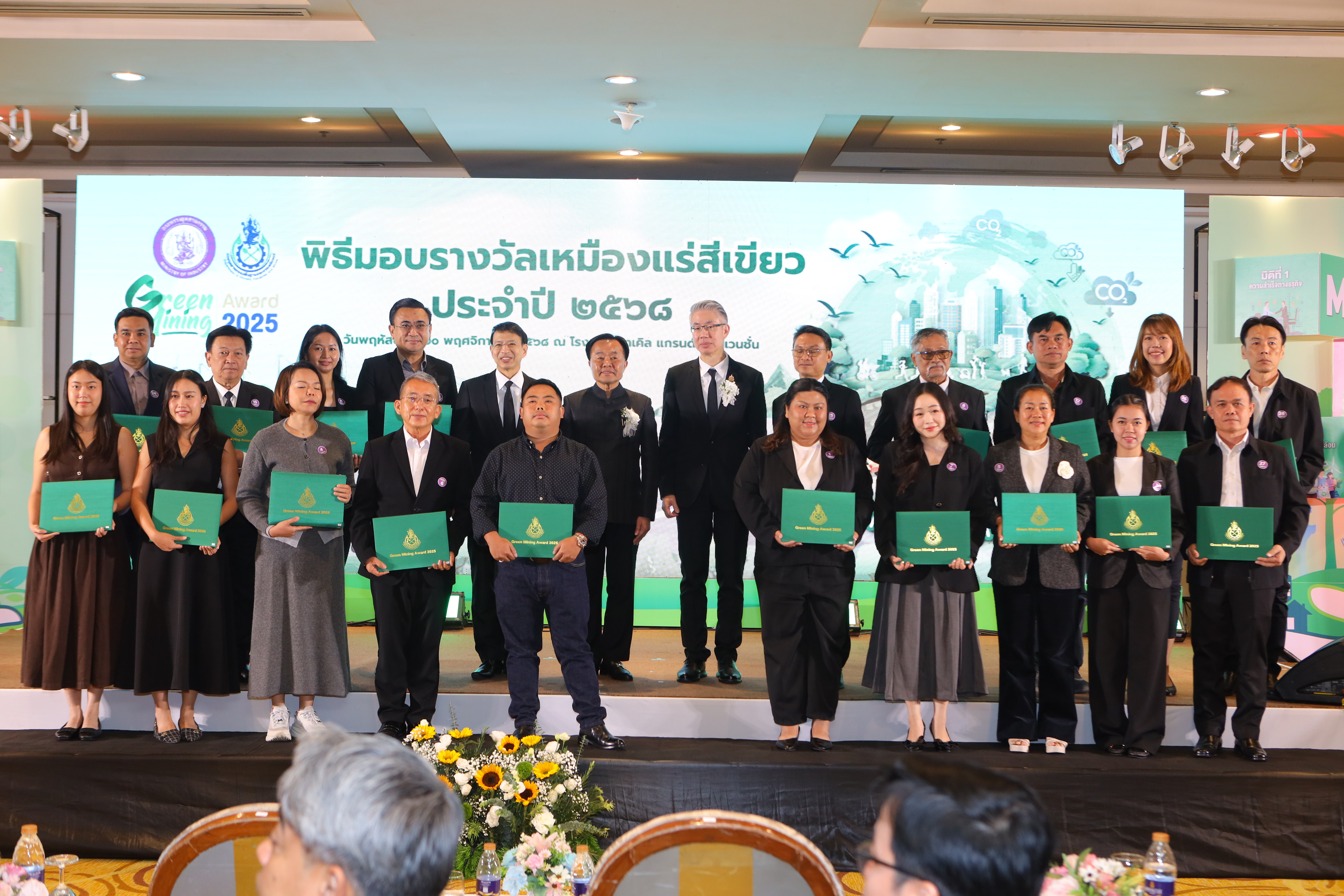 ทั้งนี้ในปี 2568 มีสถานประกอบการเหมืองแร่และอุตสาหกรรมพื้นฐานที่ผ่านเกณฑ์และได้รับรางวัล รวมทั้งสิ้น 308 ราย ประกอบด้วย รางวัลเหมืองแร่สีเขียวรายใหม่ จำนวน 30 ราย รางวัลรักษามาตรฐานเหมืองแร่สีเขียว จำนวน 276 ราย และรางวัลรักษามาตรฐานเหมืองแร่สีเขียวต่อเนื่องดีเด่น จำนวน 2 ราย “สำหรับแนวคิดของการจัดงานในปีนี้ คือ “Great MIND To Green MINE” หมายถึง การเปิดใจและร่วมมือกันของทุกภาคส่วน ทั้งภาครัฐ ผู้ประกอบการ และชุมชน ซึ่ง กพร. ชัดเจนในการบริหารจัดการให้ภาคอุตสาหกรรมมีความสามารถในการแข่งขันและเติบโตอย่างยั่งยืน โดยสนับสนุนให้ผู้ประกอบการทำเหมืองแร่และประกอบอุตสาหกรรมพื้นฐานอย่างถูกต้องตามกฎหมาย มีมาตรฐานความปลอดภัยที่ดี และเป็นมิตรต่อสิ่งแวดล้อม เพราะเรามุ่งมั่นให้ประชาชนในทุกพื้นที่ที่มีเหมืองแร่ได้รับการยกระดับคุณภาพชีวิตที่ดีขึ้น เพื่อผลักดันให้เหมืองแร่ไทยเติบโตอย่างมีคุณภาพ และอยู่ร่วมกับชุมชนได้อย่างแท้จริง” นายอดิทัตฯ กล่าวทิ้งท้าย