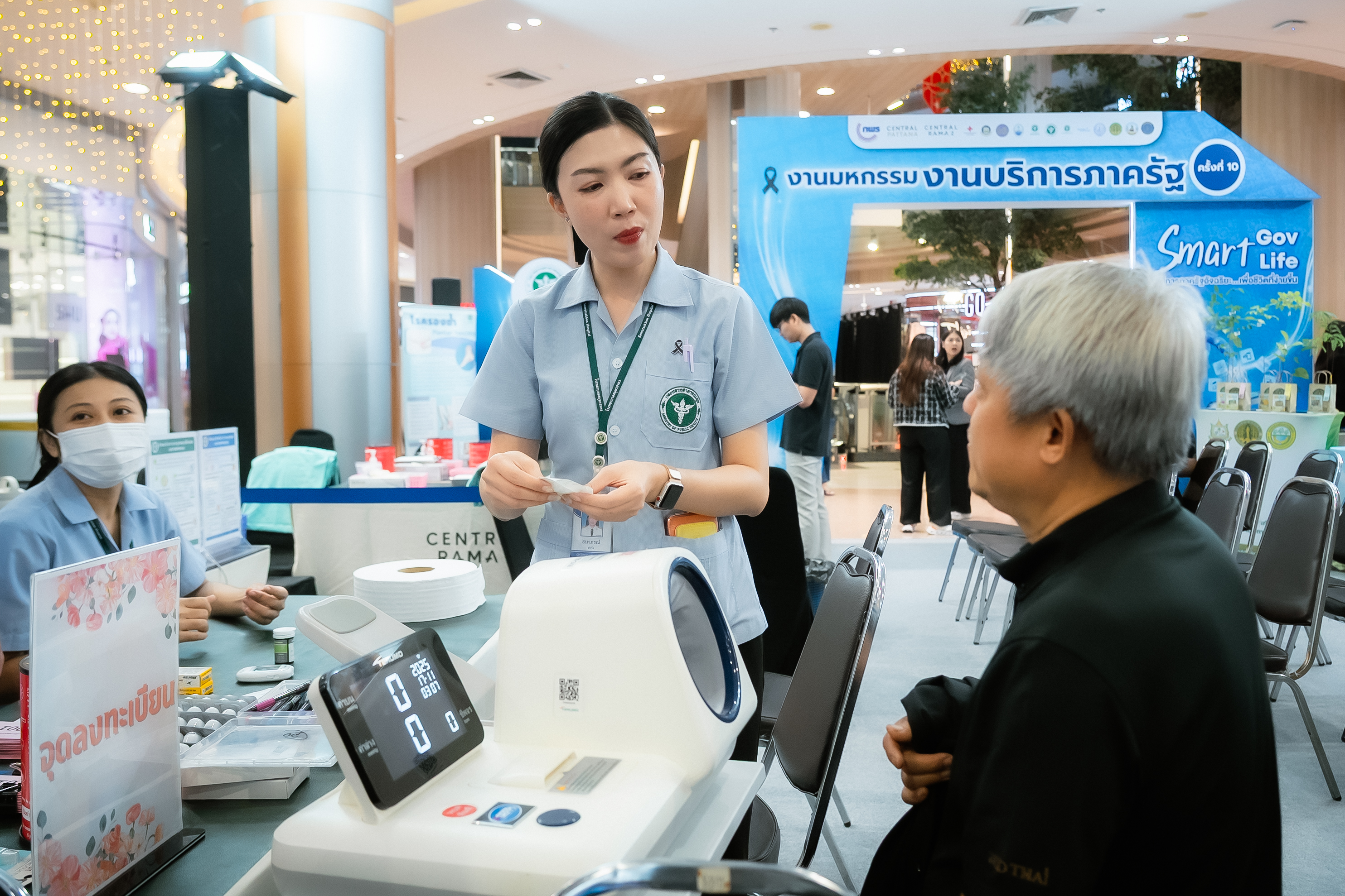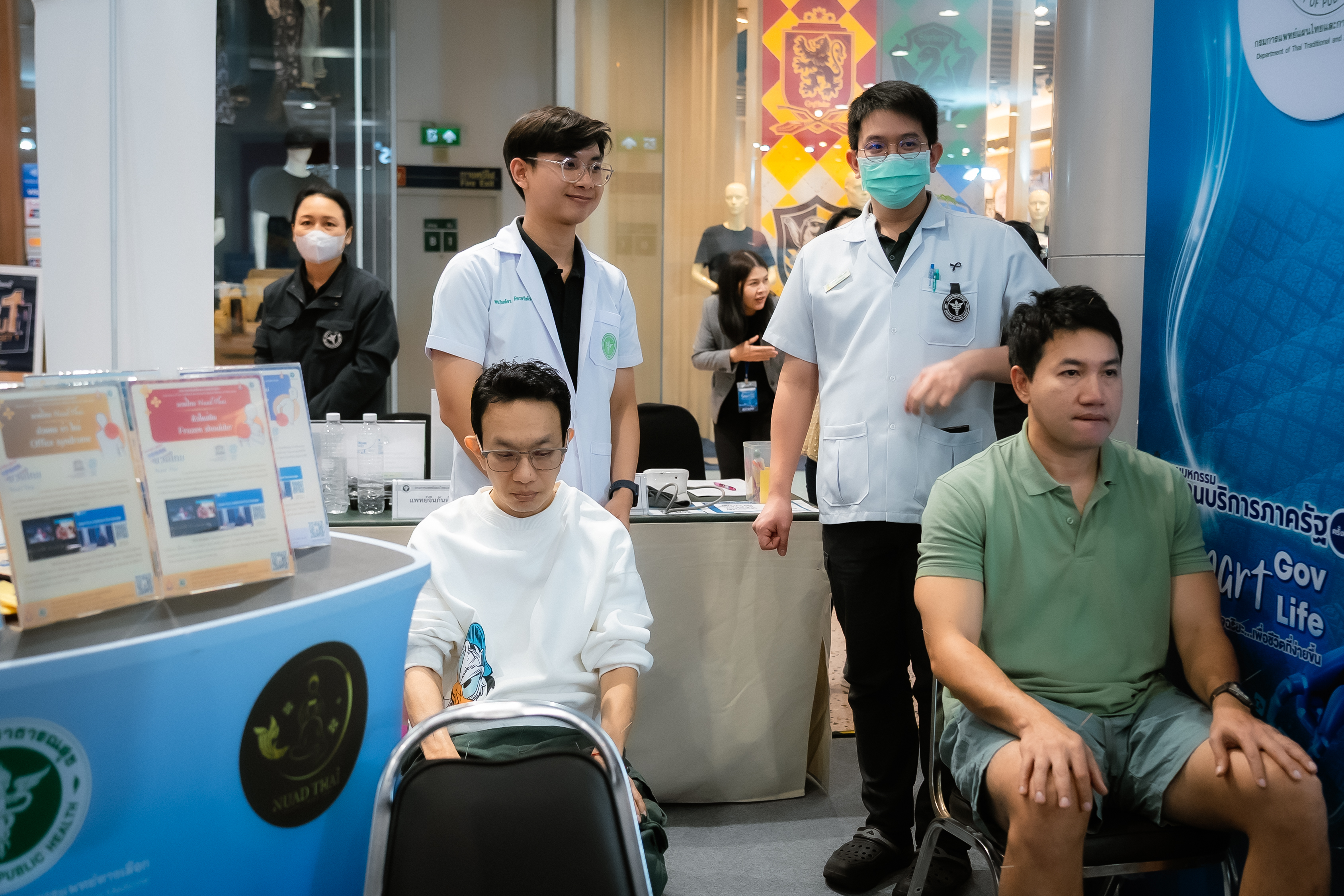 การให้บริการภายในงาน เช่น บริการฉีดวัคซีนไข้หวัดใหญ่ 3 สายพันธุ์ ตรวจสุขภาพเบื้องต้น คัดกรองเบาหวาน วัดมวลกระดูก ตรวจสุขภาพเท้า คัดกรองภาวะสมองเสื่อมผ่าน Thai Auto MOCA และนวดกดจุด ฝังเข็ม นอกจากนี้ ยังมีบริการเปลี่ยนใบขับขี่เป็นดิจิทัล และรับฟังข้อเสนอแนะในการปรับปรุงภาครัฐผ่านบอกเราถึงรัฐที่มีการเชื่อมโยงกับ แพลตฟอร์ม “Traffy Fondue”ของสำนักงานพัฒนาวิทยาศาสตร์และเทคโนโลยีแห่งชาติ