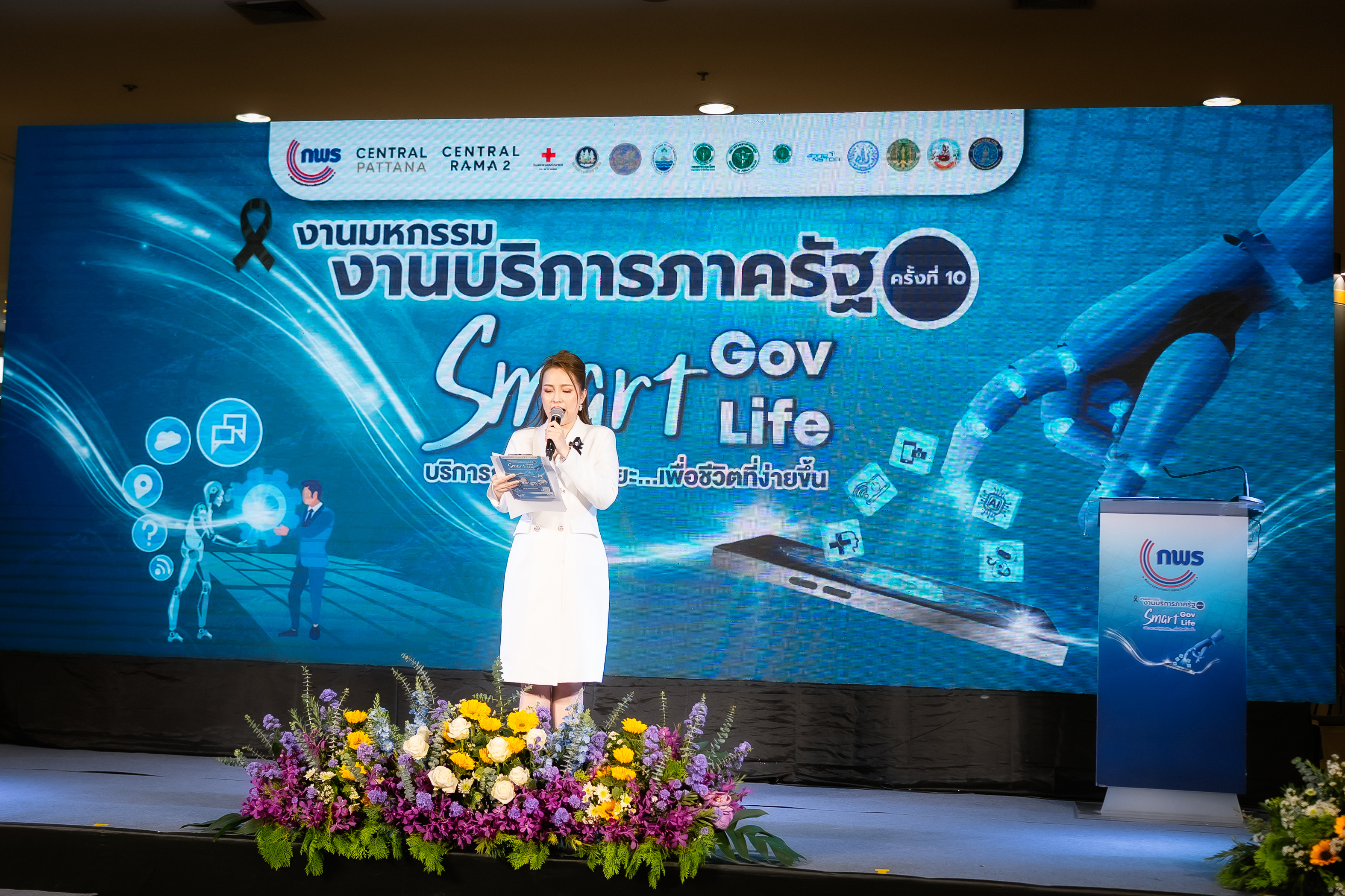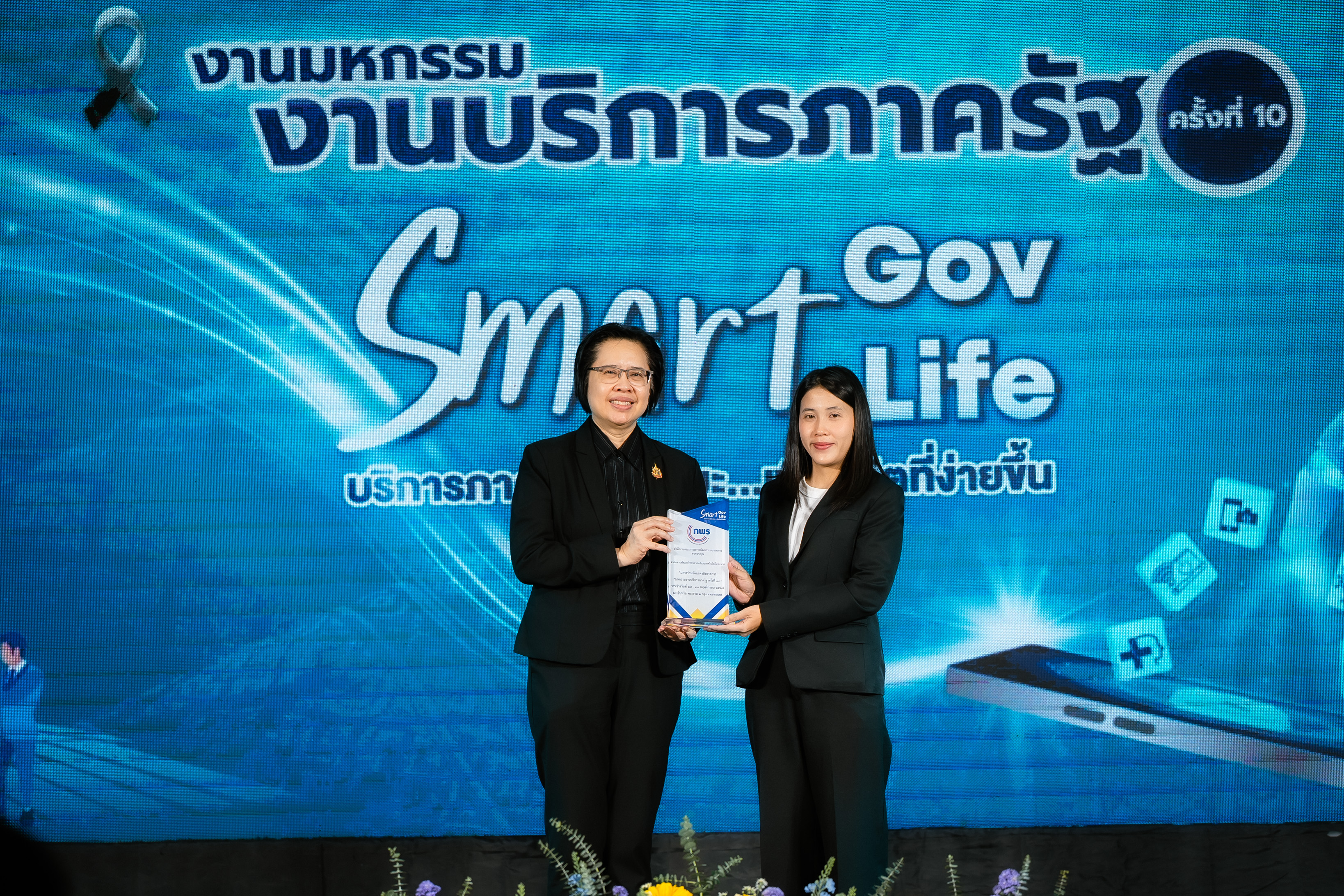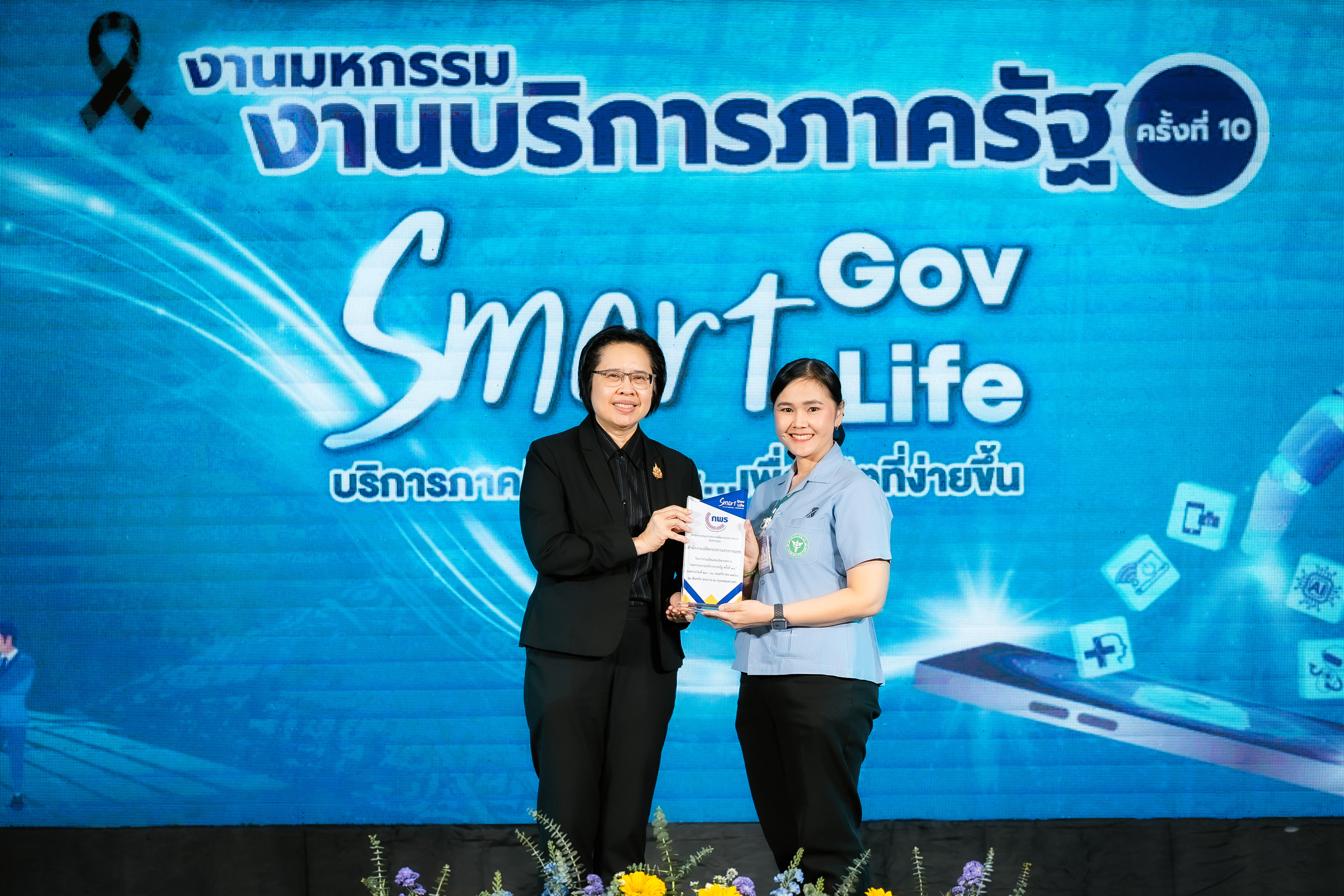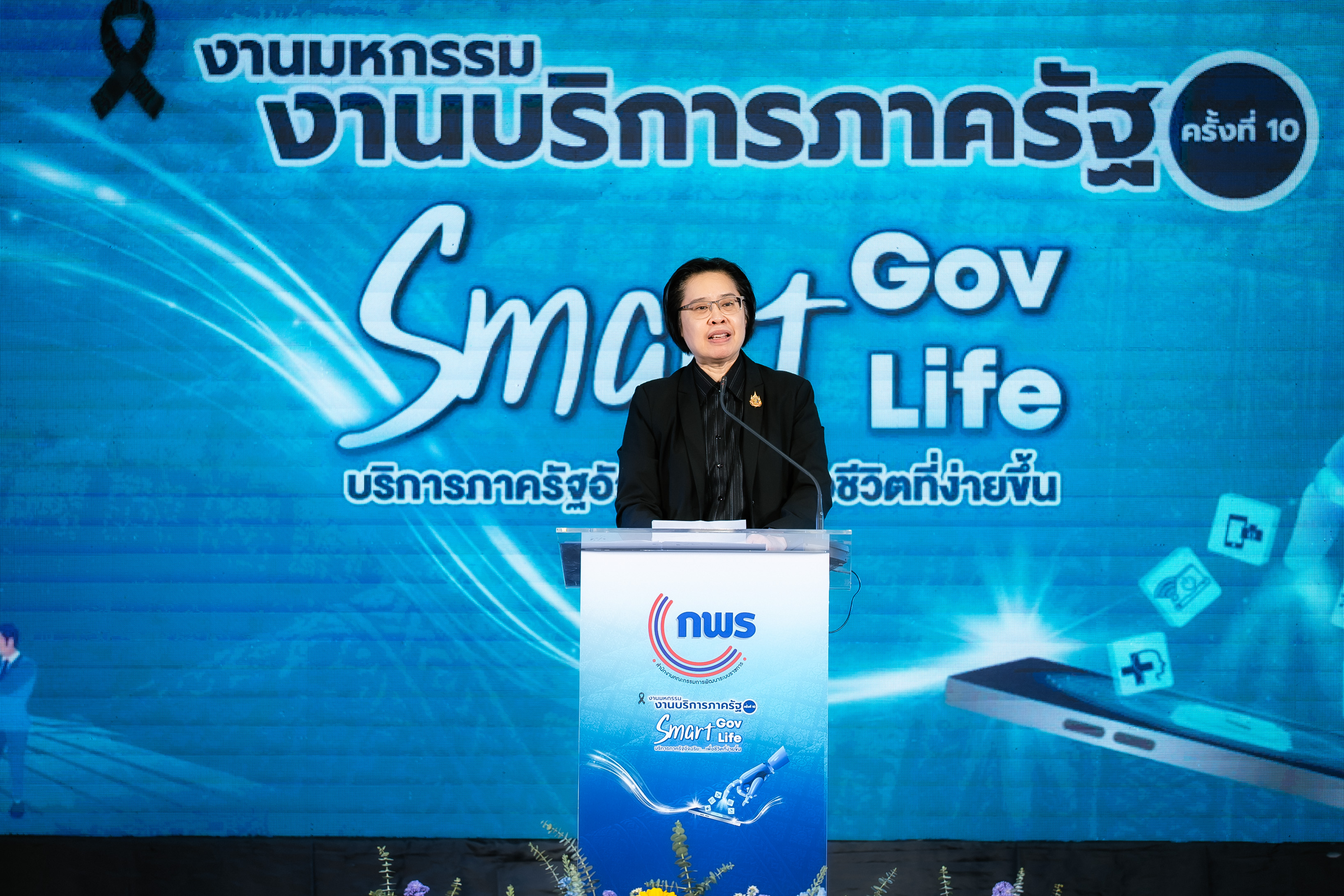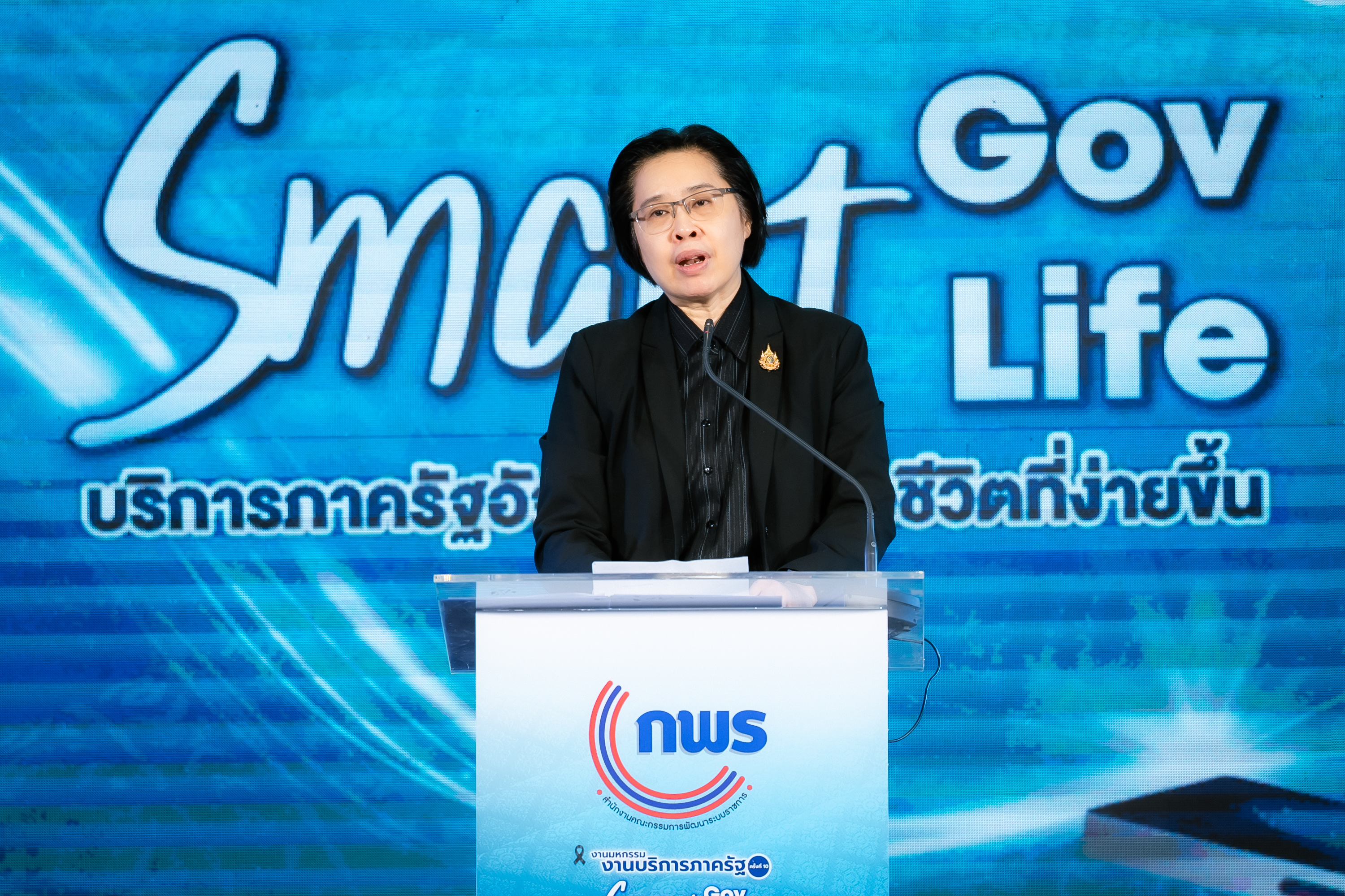 โดย นางสาวอ้อนฟ้า เวชชาชีวะ เลขาธิการ ก.พ.ร. เน้นย้ำแนวคิดในการจัดงานมหกรรมงานบริการภาครัฐครั้งนี้ "Smart Gov, Smart Life" เพื่อแสดงถึงความมุ่งมั่นในการขับเคลื่อนการทำงานของหน่วยงานภาครัฐให้มีความ "Smart" พร้อมไปกับการยกระดับคุณภาพชีวิตและความสุขของประชาชน พร้อมทั้งมอบโล่เกียรติคุณให้แก่ผู้บริหารหน่วยงาน เพื่อแสดงความขอบคุณหน่วยงานภาครัฐที่มาร่วมออกบูธนิทรรศการ ประกอบด้วย กรมประมง กรมการขนส่งทางบก โรงพยาบาลจุฬาลงกรณ์ สภากาชาดไทย กรมทรัพยากรทางทะเลและชายฝั่ง กรมการแพทย์แผนไทยและการแพทย์ทางเลือก กรมการจัดหางาน กรมหม่อนไหม กรมพัฒนาที่ดิน กรมป่าไม้ สำนักงานปลัดกระทรวงสาธารณสุข กรมควบคุมโรค และสำนักงานพัฒนาวิทยาศาสตร์และเทคโนโลยีแห่งชาติ นอกจากนี้ได้มอบโล่ขอบคุณบริษัท เซ็นทรัลพัฒนา จำกัด (มหาชน) และเซ็นทรัล พระราม 2 ที่ให้ความเอื้อเฟื้อสถานที่จัดงานในครั้งนี้