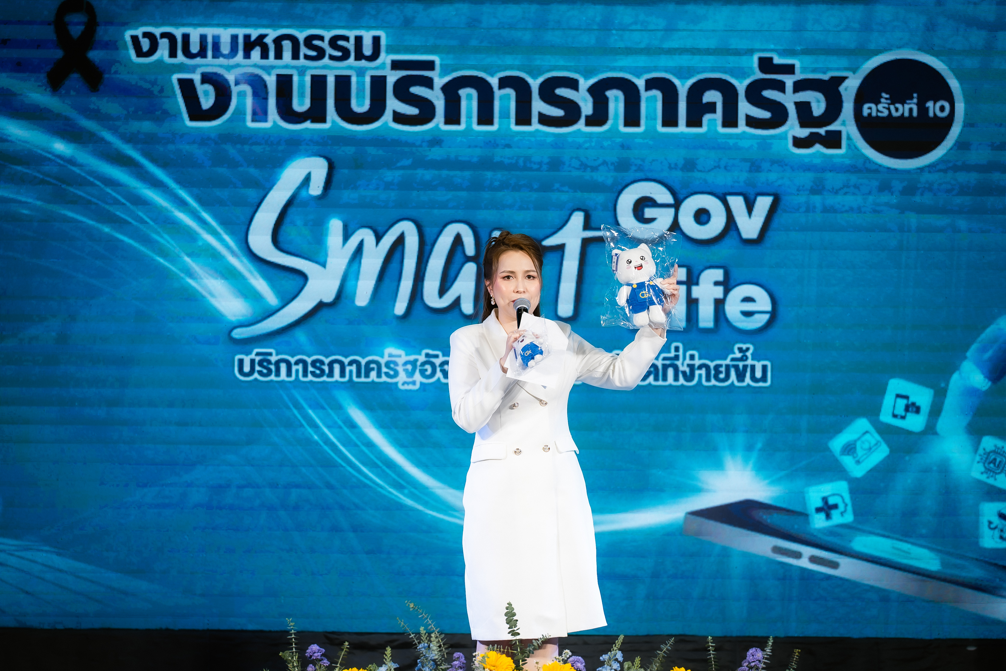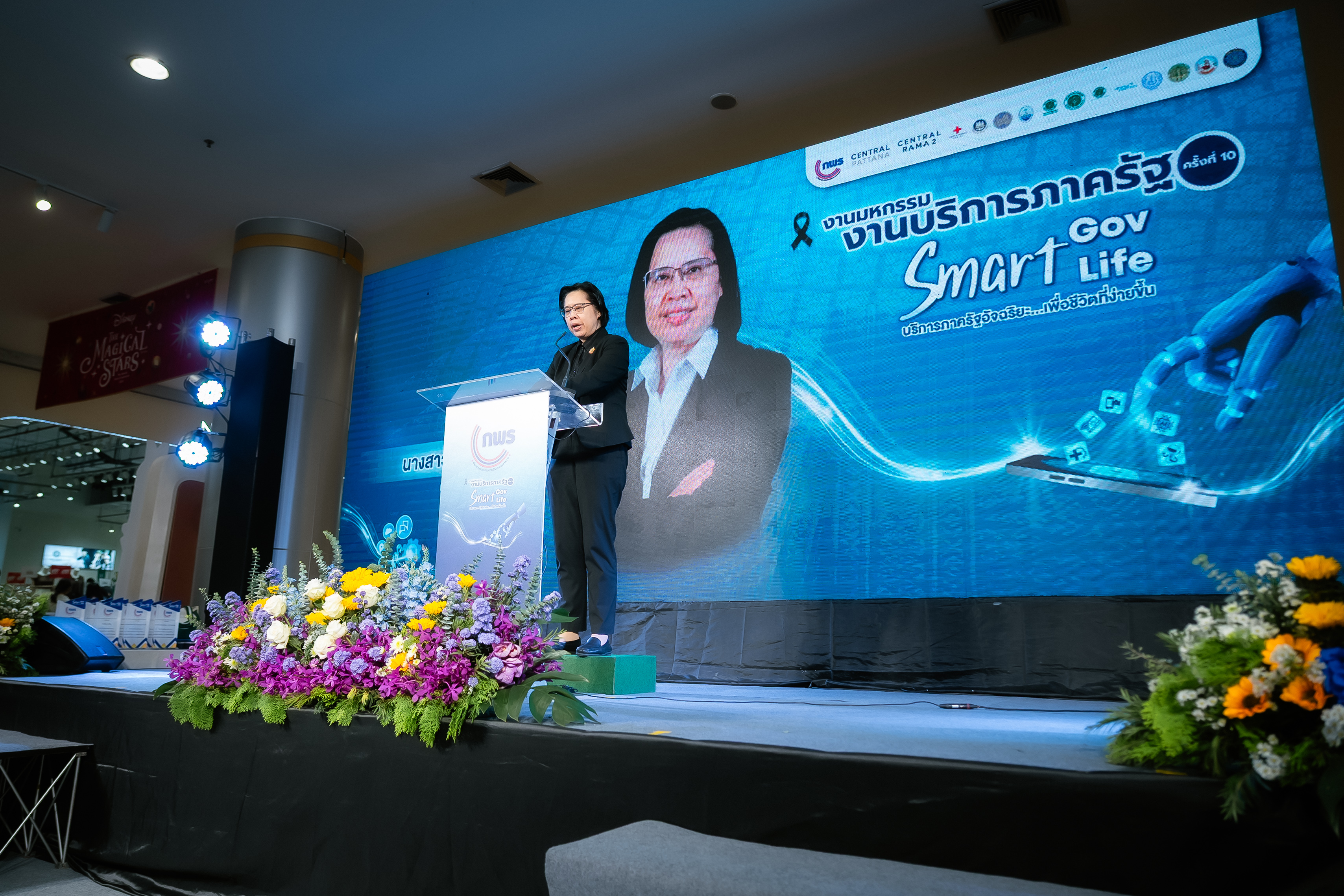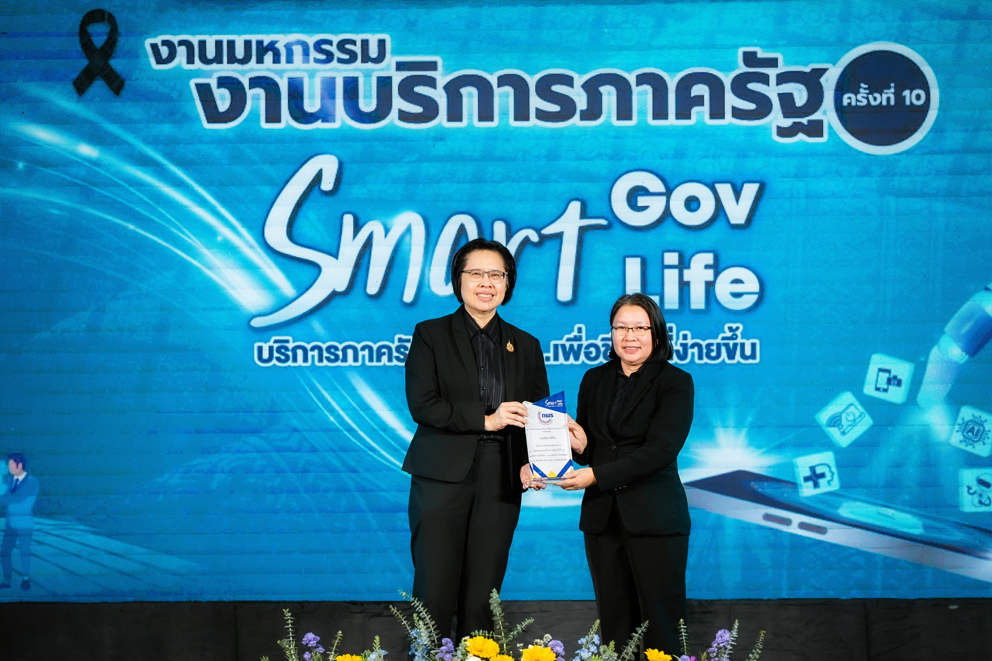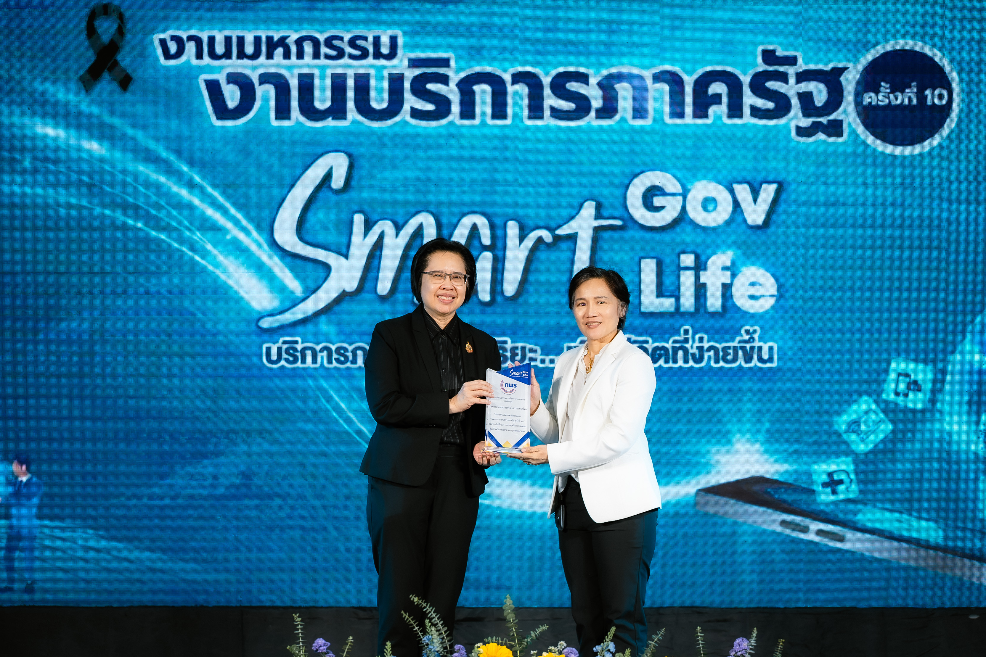 โดย นางสาวอ้อนฟ้า เวชชาชีวะ เลขาธิการ ก.พ.ร. เน้นย้ำแนวคิดในการจัดงานมหกรรมงานบริการภาครัฐครั้งนี้ "Smart Gov, Smart Life" เพื่อแสดงถึงความมุ่งมั่นในการขับเคลื่อนการทำงานของหน่วยงานภาครัฐให้มีความ "Smart" พร้อมไปกับการยกระดับคุณภาพชีวิตและความสุขของประชาชน พร้อมทั้งมอบโล่เกียรติคุณให้แก่ผู้บริหารหน่วยงาน เพื่อแสดงความขอบคุณหน่วยงานภาครัฐที่มาร่วมออกบูธนิทรรศการ ประกอบด้วย กรมประมง กรมการขนส่งทางบก โรงพยาบาลจุฬาลงกรณ์ สภากาชาดไทย กรมทรัพยากรทางทะเลและชายฝั่ง กรมการแพทย์แผนไทยและการแพทย์ทางเลือก กรมการจัดหางาน กรมหม่อนไหม กรมพัฒนาที่ดิน กรมป่าไม้ สำนักงานปลัดกระทรวงสาธารณสุข กรมควบคุมโรค และสำนักงานพัฒนาวิทยาศาสตร์และเทคโนโลยีแห่งชาติ นอกจากนี้ได้มอบโล่ขอบคุณบริษัท เซ็นทรัลพัฒนา จำกัด (มหาชน) และเซ็นทรัล พระราม 2 ที่ให้ความเอื้อเฟื้อสถานที่จัดงานในครั้งนี้