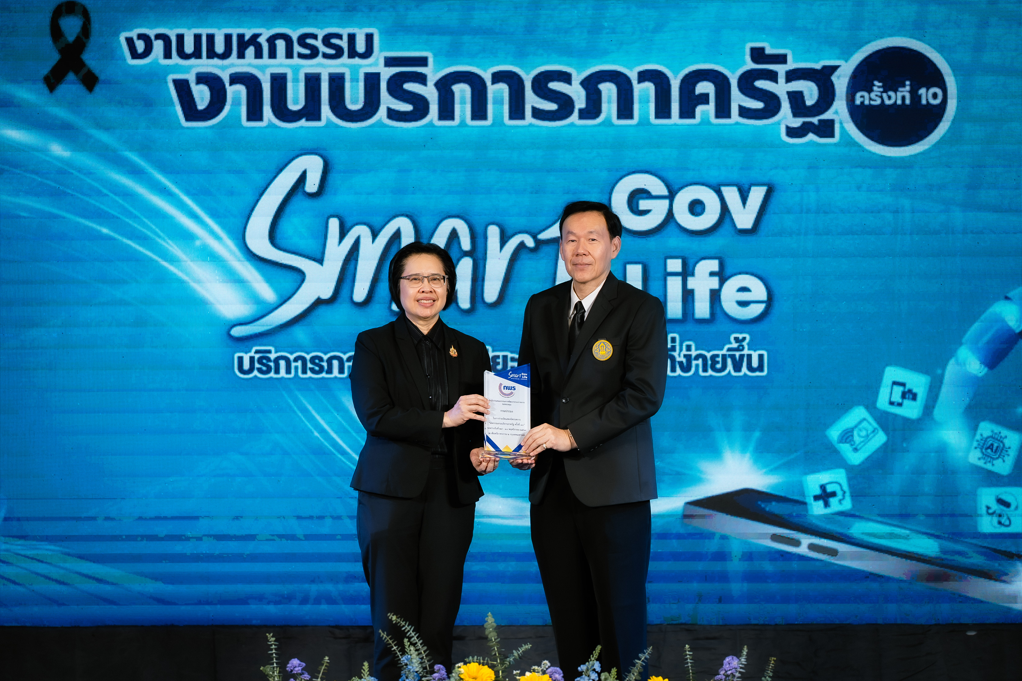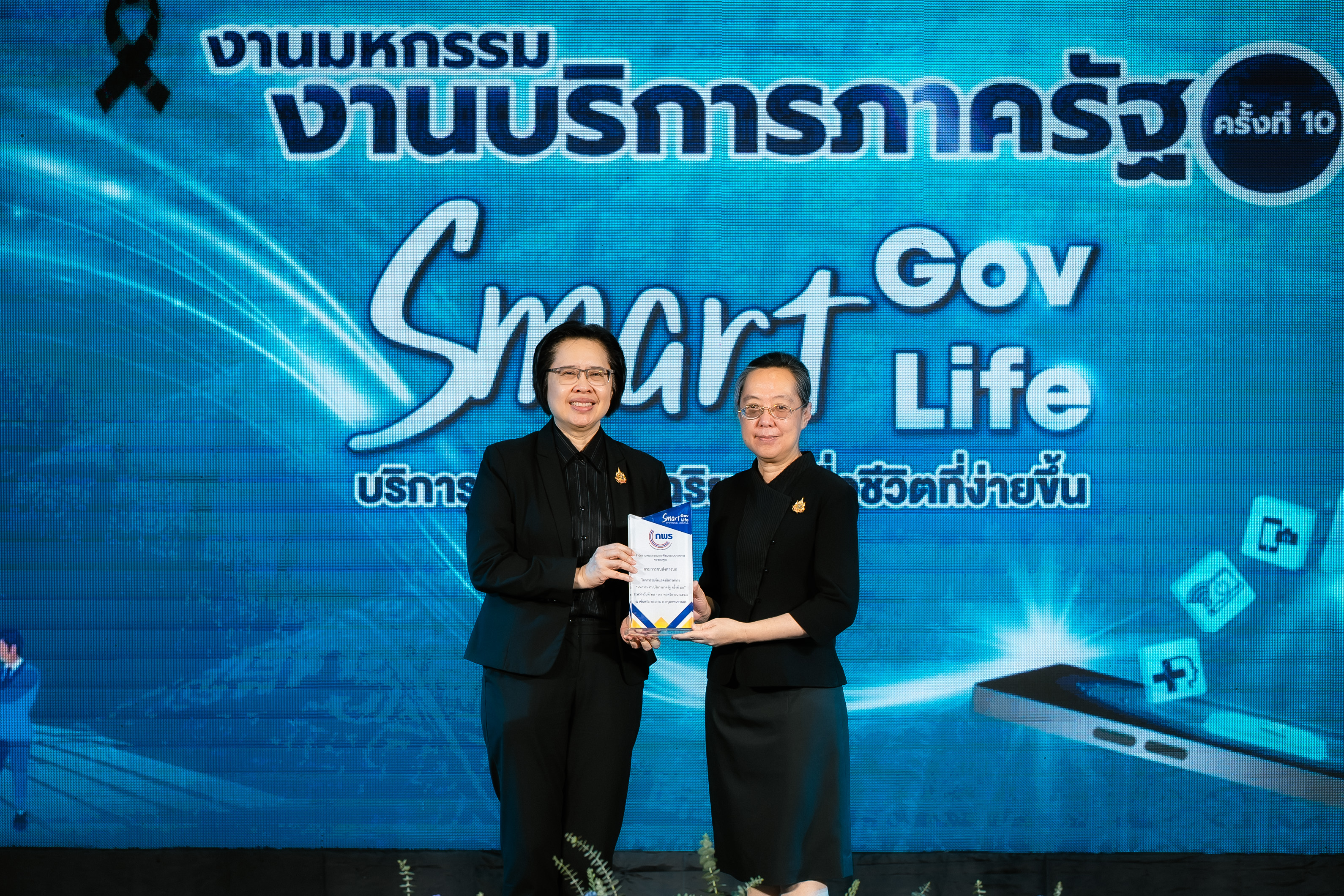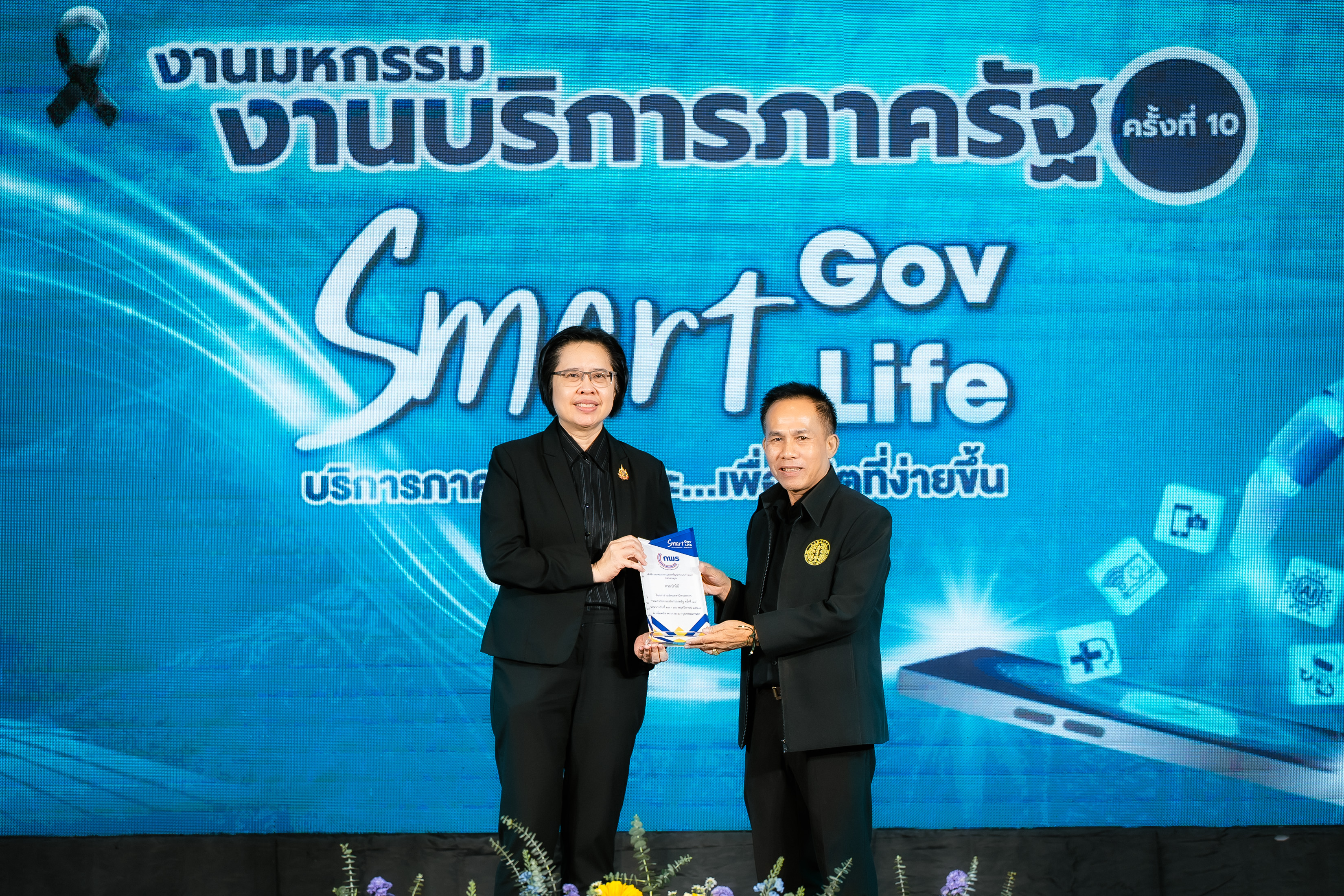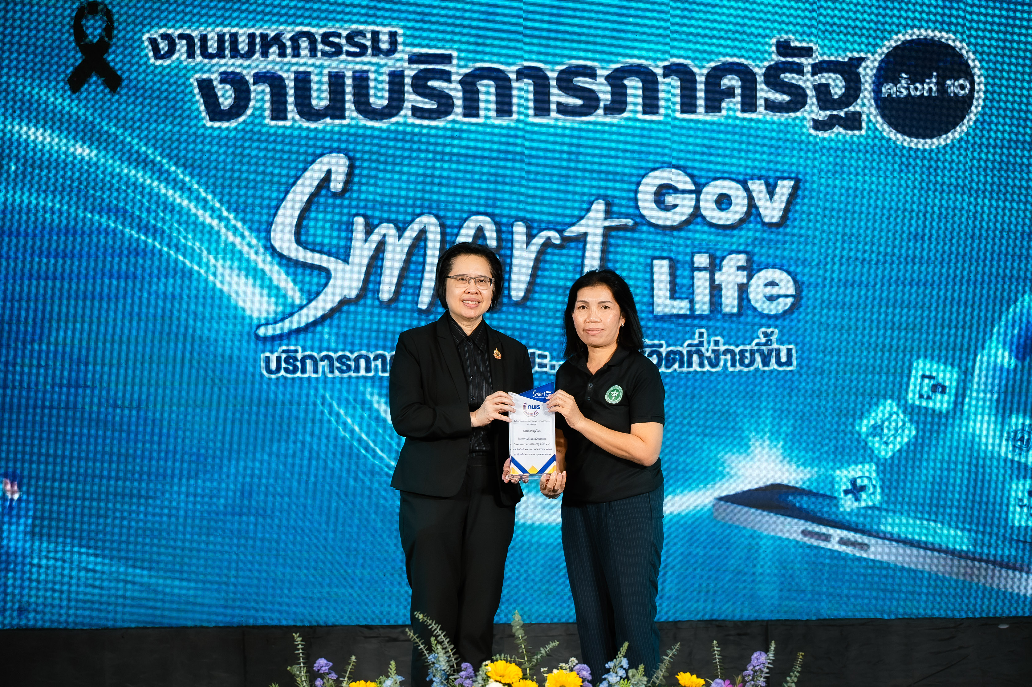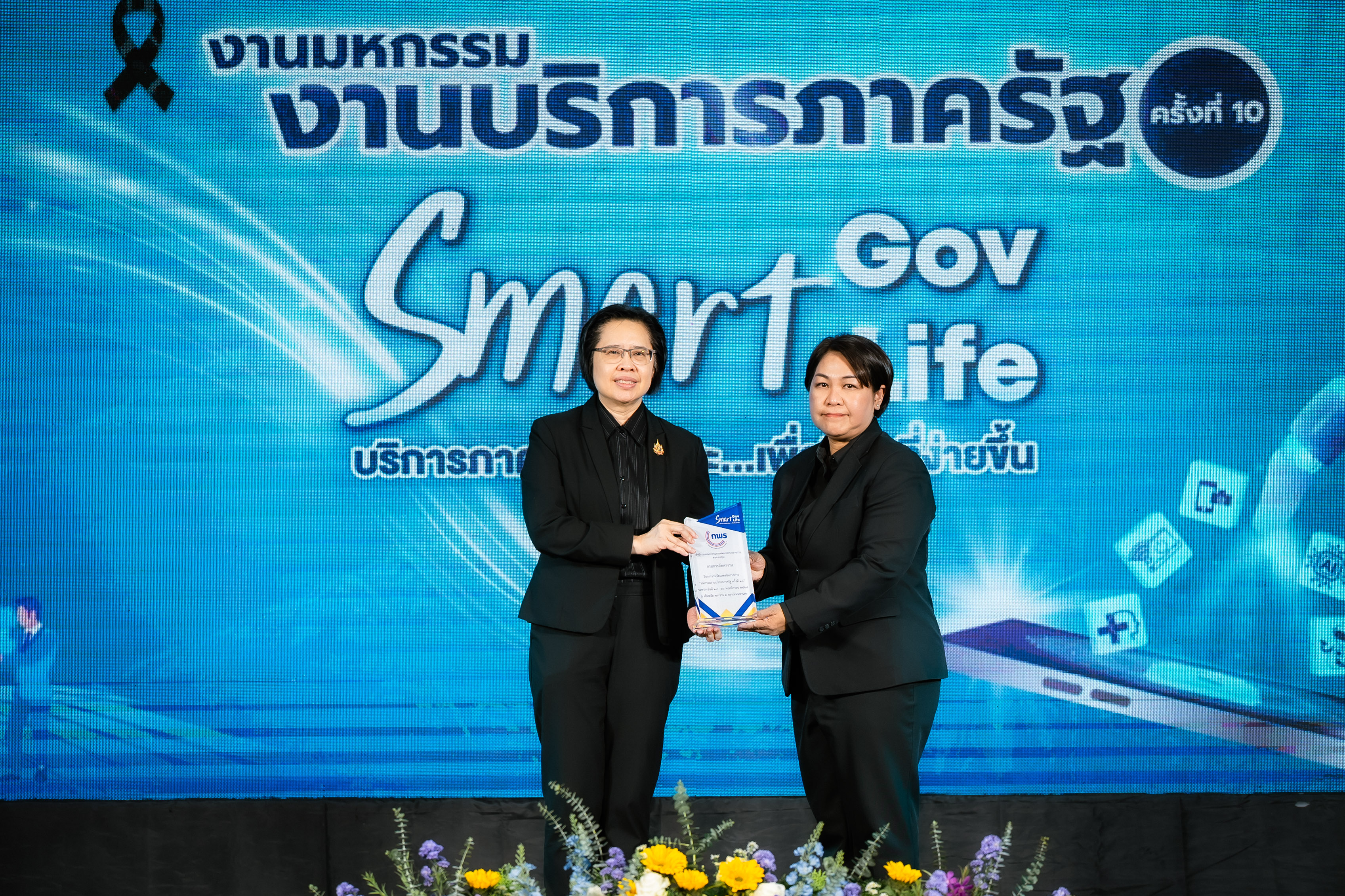 โดย นางสาวอ้อนฟ้า เวชชาชีวะ เลขาธิการ ก.พ.ร. เน้นย้ำแนวคิดในการจัดงานมหกรรมงานบริการภาครัฐครั้งนี้ "Smart Gov, Smart Life" เพื่อแสดงถึงความมุ่งมั่นในการขับเคลื่อนการทำงานของหน่วยงานภาครัฐให้มีความ "Smart" พร้อมไปกับการยกระดับคุณภาพชีวิตและความสุขของประชาชน พร้อมทั้งมอบโล่เกียรติคุณให้แก่ผู้บริหารหน่วยงาน เพื่อแสดงความขอบคุณหน่วยงานภาครัฐที่มาร่วมออกบูธนิทรรศการ ประกอบด้วย กรมประมง กรมการขนส่งทางบก โรงพยาบาลจุฬาลงกรณ์ สภากาชาดไทย กรมทรัพยากรทางทะเลและชายฝั่ง กรมการแพทย์แผนไทยและการแพทย์ทางเลือก กรมการจัดหางาน กรมหม่อนไหม กรมพัฒนาที่ดิน กรมป่าไม้ สำนักงานปลัดกระทรวงสาธารณสุข กรมควบคุมโรค และสำนักงานพัฒนาวิทยาศาสตร์และเทคโนโลยีแห่งชาติ นอกจากนี้ได้มอบโล่ขอบคุณบริษัท เซ็นทรัลพัฒนา จำกัด (มหาชน) และเซ็นทรัล พระราม 2 ที่ให้ความเอื้อเฟื้อสถานที่จัดงานในครั้งนี้