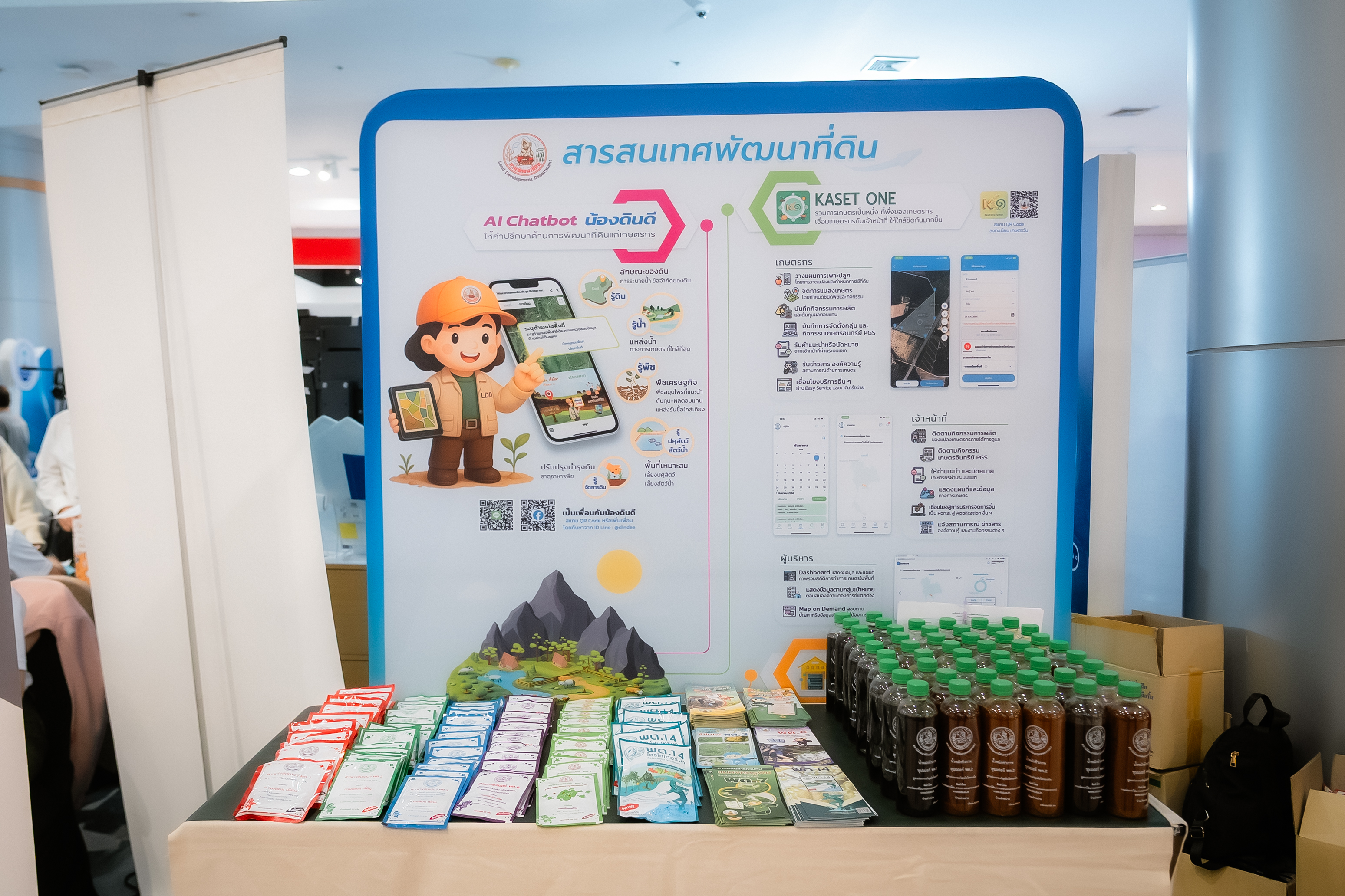 บูธกิจกรรมที่น่าสนใจ ได้แก่ บริการแจกกล้าพันธุ์ไม้ยืนต้น กรมป่าไม้ บริการแจกน้ำหมักชีวภาพและสารบำรุงดิน กรมพัฒนาที่ดิน แนะนำเทคโนโลยีตรวจจับพันธุ์ปลา (Thailand FishAI) กรมประมง การให้ความรู้เกี่ยวกับการจัดการขยะทะเล กรมทรัพยากรทางทะเลและชายฝั่ง แนะนำระบบใบอนุญาตจัดหางาน (DOE e-License) และระบบไทยมีงานทำ กรมการจัดหางาน และการนำเสนอความรู้เกี่ยวกับผ้าไหมไทย กรมหม่อนไหม