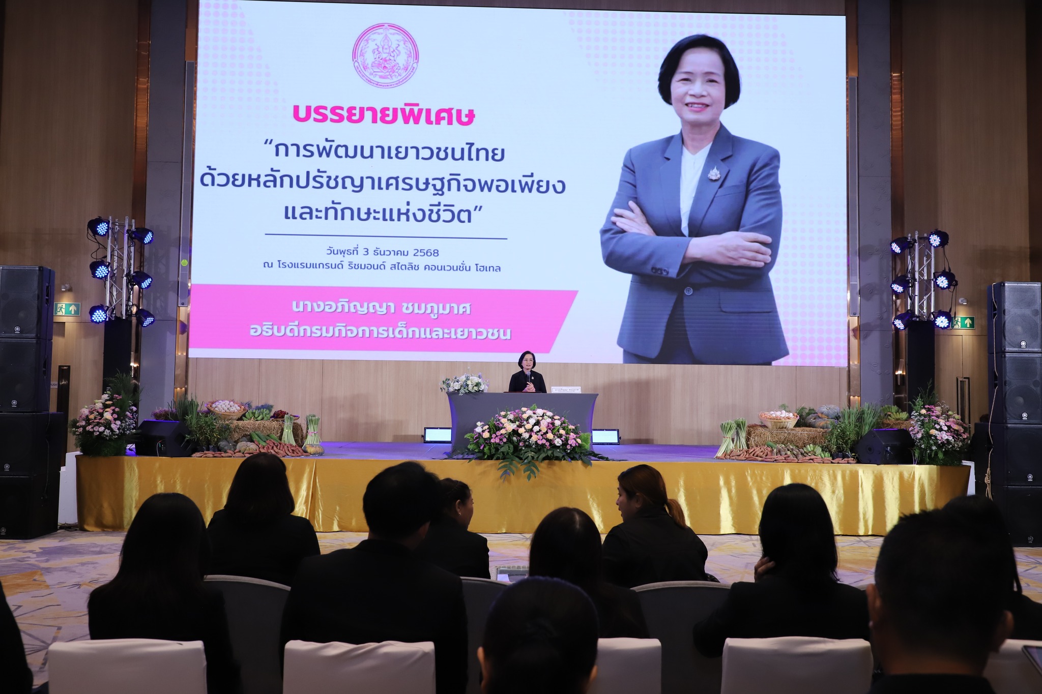 นอกจากนี้ นางอภิญญา ชมภูมาศ อธิบดีกรมกิจการเด็กและเยาวชน ได้ให้เกียรติ ขึ้นบรรยายพิเศษ หัวข้อ “การพัฒนาเยาวชนไทยด้วยหลักเศรษฐกิจพอเพียงและทักษะแห่งชีวิต” ในโครงการ “เยาวชนสร้างฝัน ปั้นอาชีพ รีสตาร์ทชีวิต (Your Future Your Career)” เพื่อเสริมพลังให้กับเด็กและเยาวชน ด้วยหลักปรัชญาเศรษฐกิจพอเพียง มุ่งพัฒนาทักษะแห่งชีวิต เพราะเด็กและเยาวชนคือพลังสำคัญของประเทศ โดยมี นางสาวสุชาดา หมื่นกล้า รองอธิบดีกรมกิจการเด็กและเยาวชน คณะผู้บริหารกรมกิจการเด็กและเยาวชน แกนนำสภาเด็กและเยาวชน รวมถึงผู้ปฏิบัติงานด้านเด็กและเยาวชน ร่วมรับฟังการบรรยายพิเศษด้วย